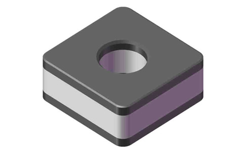 CNGA系列整体复合PCBN刀片,是在高温、超高压环境下直接复合而成,具有超厚复合层(1~2mm)、高致密度等优点,刀片上下面是PCBN材质,带中心孔定位,广泛用于灰铸铁、耐磨铸铁、耐热合金、淬硬钢的半精加工和精加工。